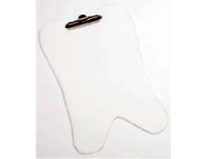 Patients filling out information will love to write on this 15" acrylic toothshaped clipboard. Use for all of your office notes. Our tooth clipboard makes a nice referral gift, too. Warning: Chocking Hazard. Small parts. Not for children under 3 yrs.
