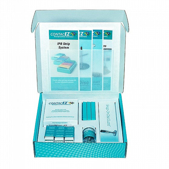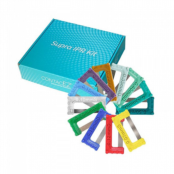 ContacEZ Supra IPR Kit is an innovative interproximal reduction system that makes interproximal enamel stripping safe and accurate without creating sharp corners or subgingival ledges. These flexible diamond strips curve and conform along the natural contours of the teeth to maximize patient comfort and safety.