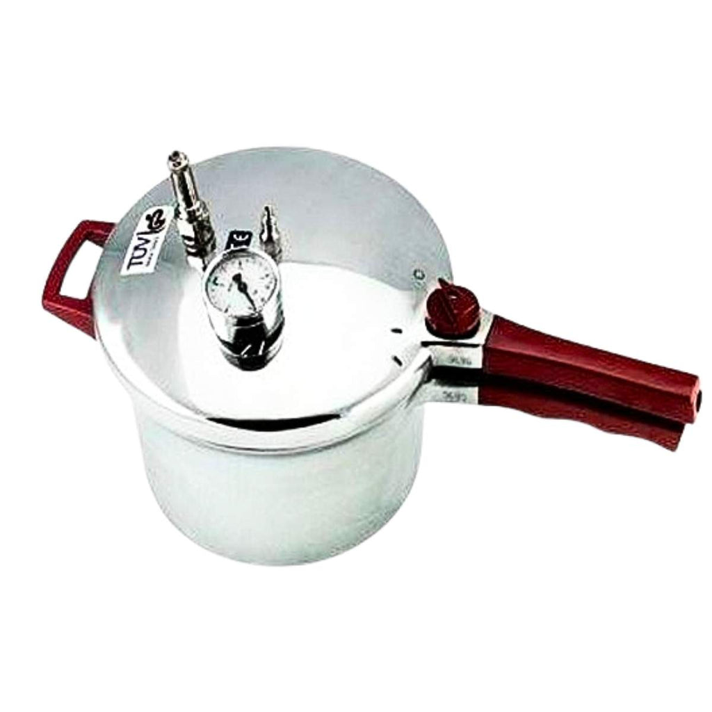 The hydraulic curing unit companion - the 6-liter pressure cooker from Dent-E-Con - Germany. Made with precision and quality, this pressure cooker is made to make your acryl denture preparation experience effortless and efficient. Made with coated aluminum alloy, this pressure cooker is built to last. Its sturdy construction makes it especially strong and durable, ensuring that it can withstand the test of time and frequent use. The pot's surface is also coated with a chemical-resistant layer that provides an extra layer of protection and ensuring that process run safely and healthily.