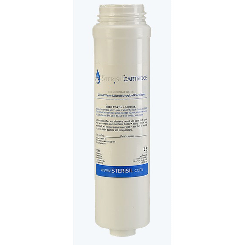 The Sterisil Cartridge delivers purified and treated dental water to chairs without a bottle.