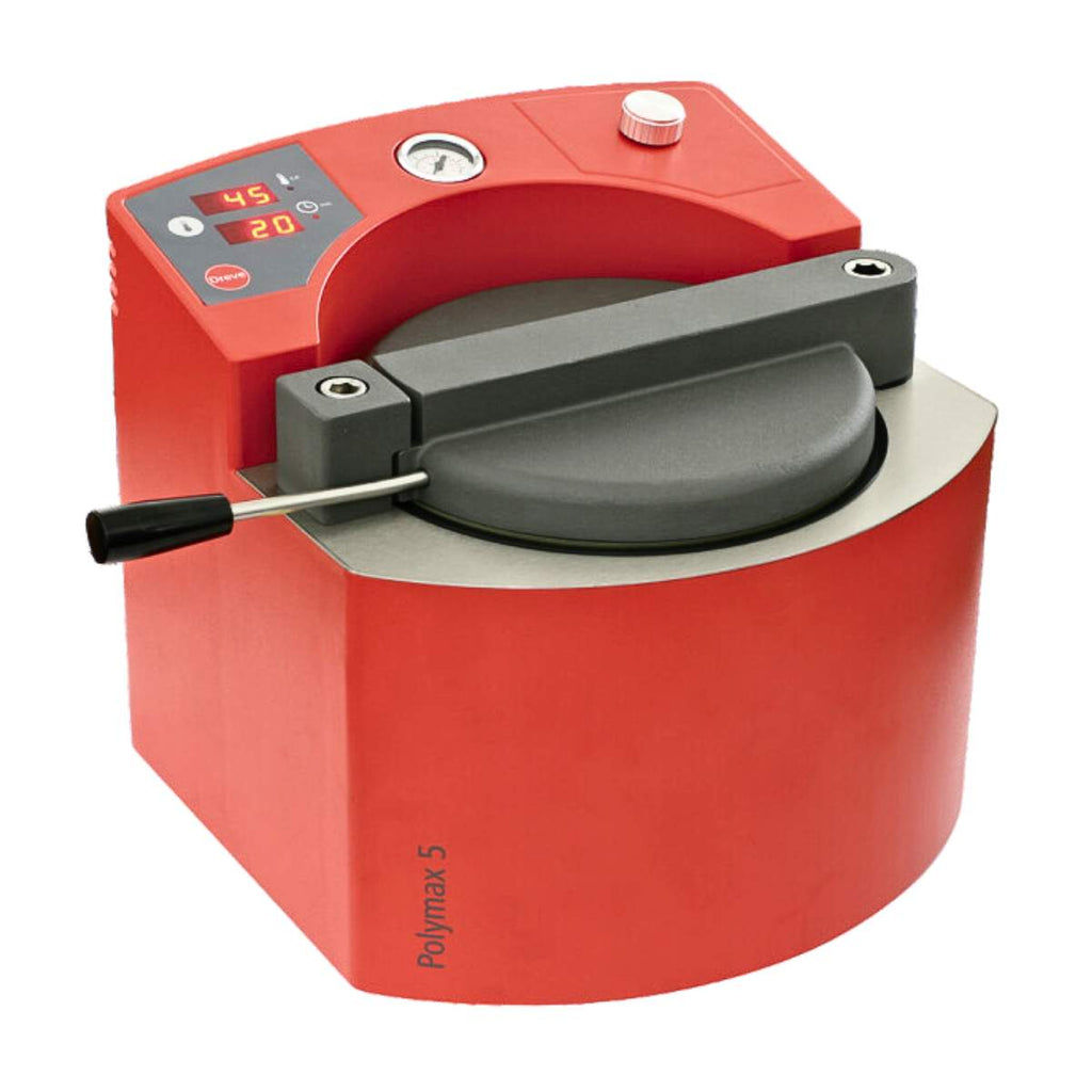 The Polymax 5 is the solution for dental resin polymerization. This solid pressure polymerization unit is made for both cold and hot polymerization. It is made to be receptive for one large articulator, three brass flasks with clamp, and four Castdon flasks. Equipped with a 90-minute timer, the Polymax 5 allows for precise control over the polymerization process. With a temperature range of up to 95 °C, this unit can be adjusted continuously to meet the specific requirements of different resins. You can achieve optimal results every time, regardless of the type of resin you are using. One of the standout features of the Polymax 5 is its variably adjustable pressure. This allows you to fine-tune the pressure according ensuring results every time. The unit can also be used as a pressure compressor, providing even more flexibility and convenience.