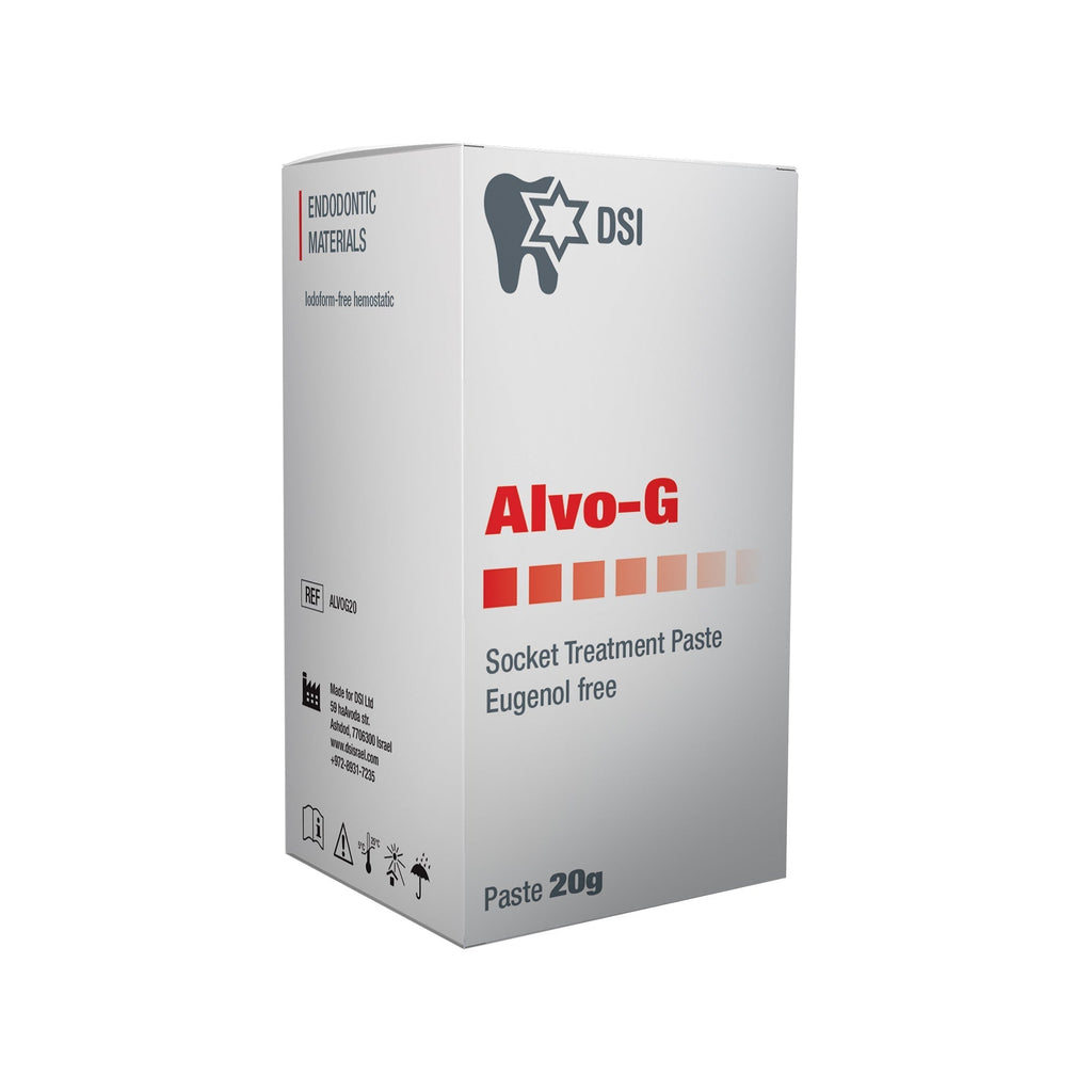 DSI Alvo-G stands out with its thick consistency, designed to fill sockets smoothly and stick firmly to the alveolus. This product has a calming effect on the tissues of the alveolar, thus quickly relieving pain. Unlike other brands, DSI Alvo-G does not contain eugenol or iodoform, yet has greatly powerful anesthetic abilities.