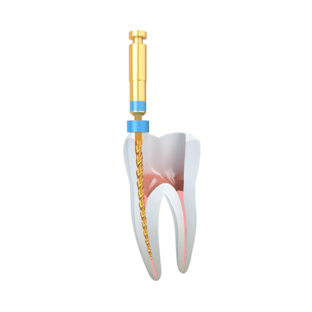 DSI ApexFile Gold is adaptable to various root canal shapes, with an increased apical taper facilitating improved root canal preparation. Its rounded guiding tip minimizes the risk of channel deviation, while color coding simplifies application order.