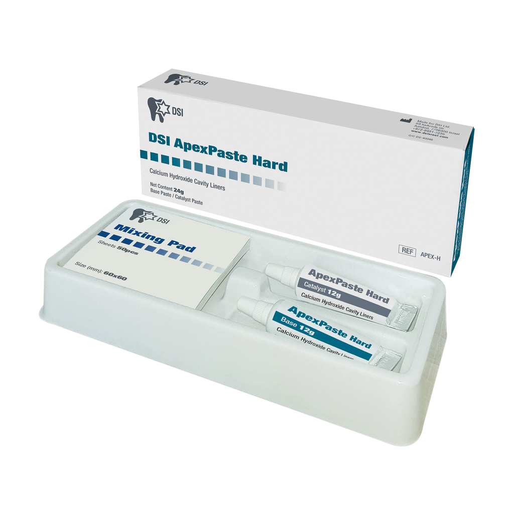 DSI ApexPaste Hard is a choice for cavity lining and pulp capping. It's a self-curing material that serves as both a direct and indirect pulp capping agent and a protective liner under various dental materials. What sets it apart is its compatibility with composite filling materials, ensuring no interference with their polymerization process, making it an ideal and efficient solution for dental procedures.