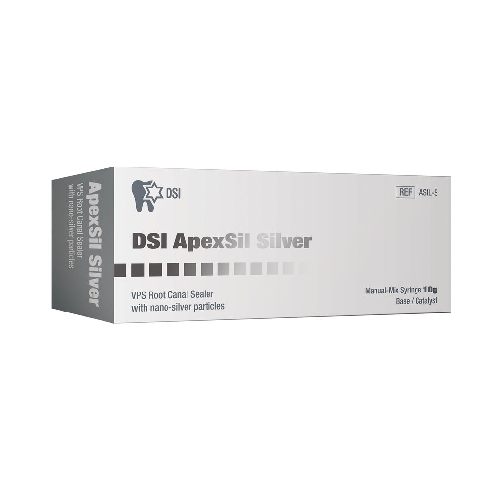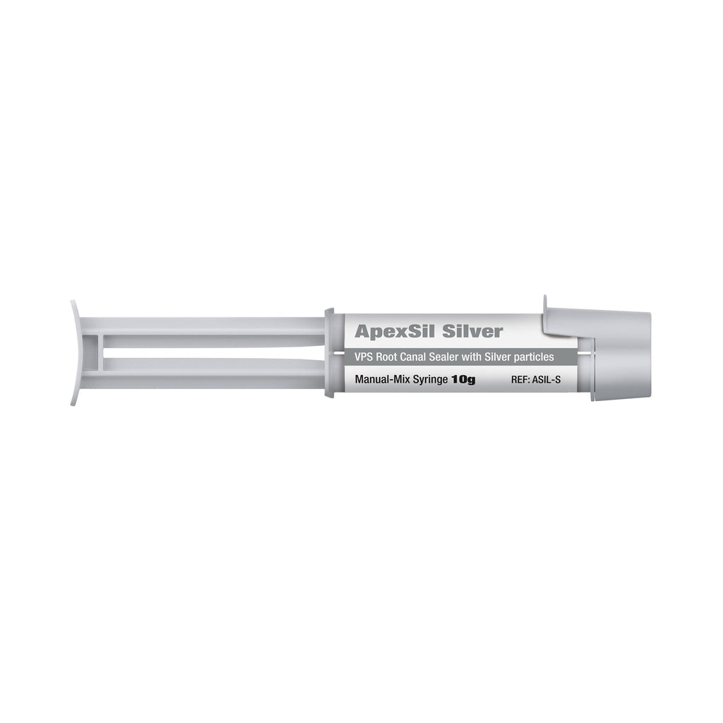 ApexSil Silver is a cutting-edge root canal sealer, based on polydimethyl siloxane and enhanced with nanosilver. This sealer offers superior radiopacity and impressive sealing capacity. It features a unique blend that includes both a sealer and cold gutta-percha with particles no larger than 30µm. The silver component acts as a preservative, ensuring long-lasting protection. ApexSil Silver stands out due to its minor expansion capacity of just 0.2%, providing excellent adherence to both gutta-percha points and dentin walls for a superior seal.