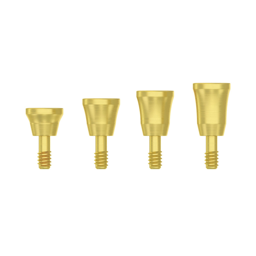 DSI concave healing caps offer great aesthetic benefits. With its flawless design, it promotes thick mucosal tissue surrounding a transgingival connection while allowing reduced metal visibility and greater tissue transparency. Thanks to their shape, trauma is minimized and healing time is reduced. Also, their special shape creates an optimal emergence profile with the ability to replace the temporary prosthetics immediately with the permanent ones without any harm to the newly grown tissues.
