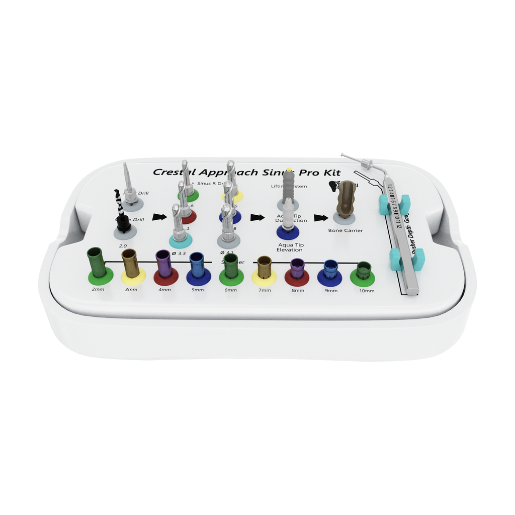 Surgical Instruments All the tools for sinus lifting in this kit are created with the highest attention to detail. The kit comes with special sinus membrane drills and stoppers to prevent damage to the sinus membrane. The drills are made especially for crestal approach and are built in the form of a "safe" drill, meaning that the tip of the drill is not sharp, and will not damage the sinus membrane.