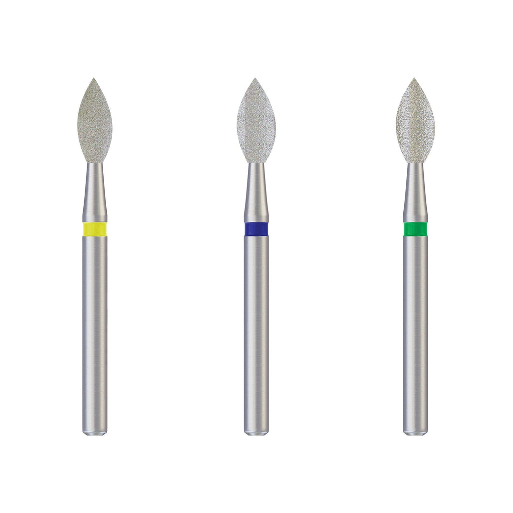 The diamond layer is crafted from carefully chosen natural diamonds and galvanic nickel metal binders, and engineered to reduce heat generation during use. The burs offer corrosion resistance, exceptional strength, durability, precision, and unparalleled effectiveness. The coating of titanium nitride enhances the technical attributes of the burs, extending their longevity and enhancing their performance over time.