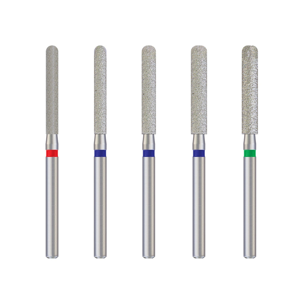 Each bur features industrial-grade diamonds precisely bonded to a high-quality stainless steel shank, ensuring unparalleled cutting efficiency and longevity. The precisely engineered diamond surfaces deliver consistent results with minimal heat generation and vibration, enhancing patient comfort and procedural outcomes. The bur shank has an FG (friction-grip Ø1.60mm) universal connection type.