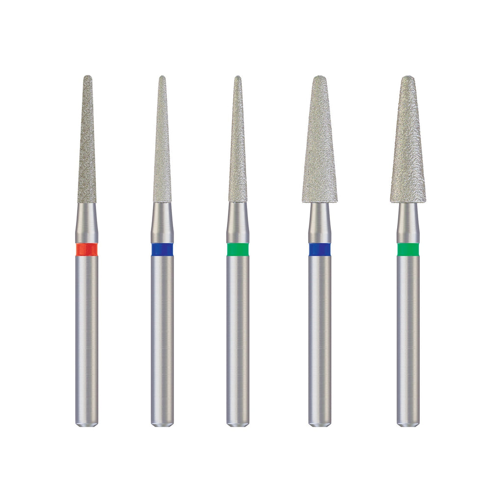 Each bur features industrial-grade diamonds precisely bonded to a high-quality stainless steel shank, ensuring unparalleled cutting efficiency and longevity. The precisely engineered diamond surfaces deliver consistent results with minimal heat generation and vibration, enhancing patient comfort and procedural outcomes. The bur shank has an FG (friction-grip Ø1.60mm) universal connection type.