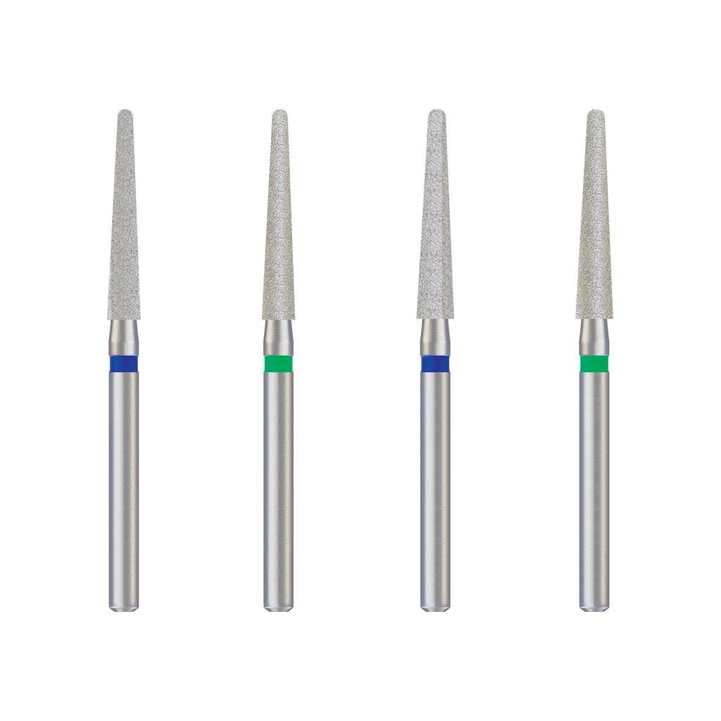 Each bur features industrial-grade diamonds precisely bonded to a high-quality stainless steel shank, ensuring unparalleled cutting efficiency and longevity. The precisely engineered diamond surfaces deliver consistent results with minimal heat generation and vibration, enhancing patient comfort and procedural outcomes. The bur shank has an FG (friction-grip Ø1.60mm) universal connection type.