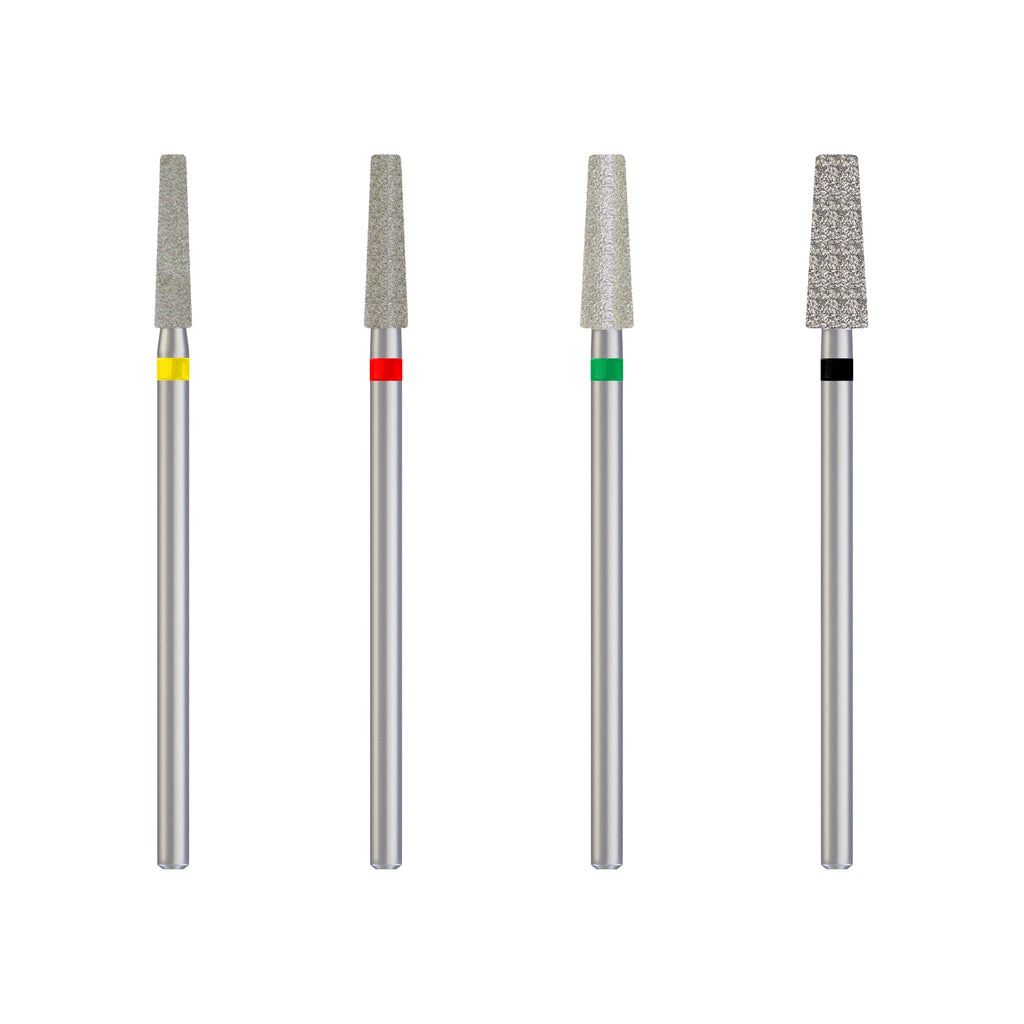 They are used for tasks such as cutting, shaping, and polishing dental prosthetics like crowns, bridges, and veneers. The burs are made of stainless steel shafts and a diamond-embedded working part (the bur's head). They are extremely durable and can be sterilized in an autoclave. The burs are designed with a universal HP shank Ø2.35mm compatible with HP Straight Cone handpieces and Micromotors.