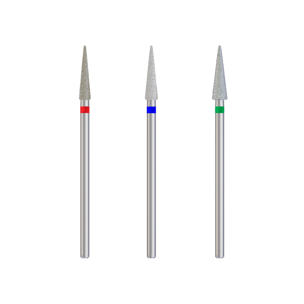 They are used for tasks such as cutting, shaping, and polishing dental prosthetics like crowns, bridges, and veneers. The burs are made of stainless steel shafts and a diamond-embedded working part (the bur's head). They are extremely durable and can be sterilized in an autoclave. The burs are designed with a universal HP shank Ø2.35mm compatible with HP Straight Cone handpieces and Micromotors.