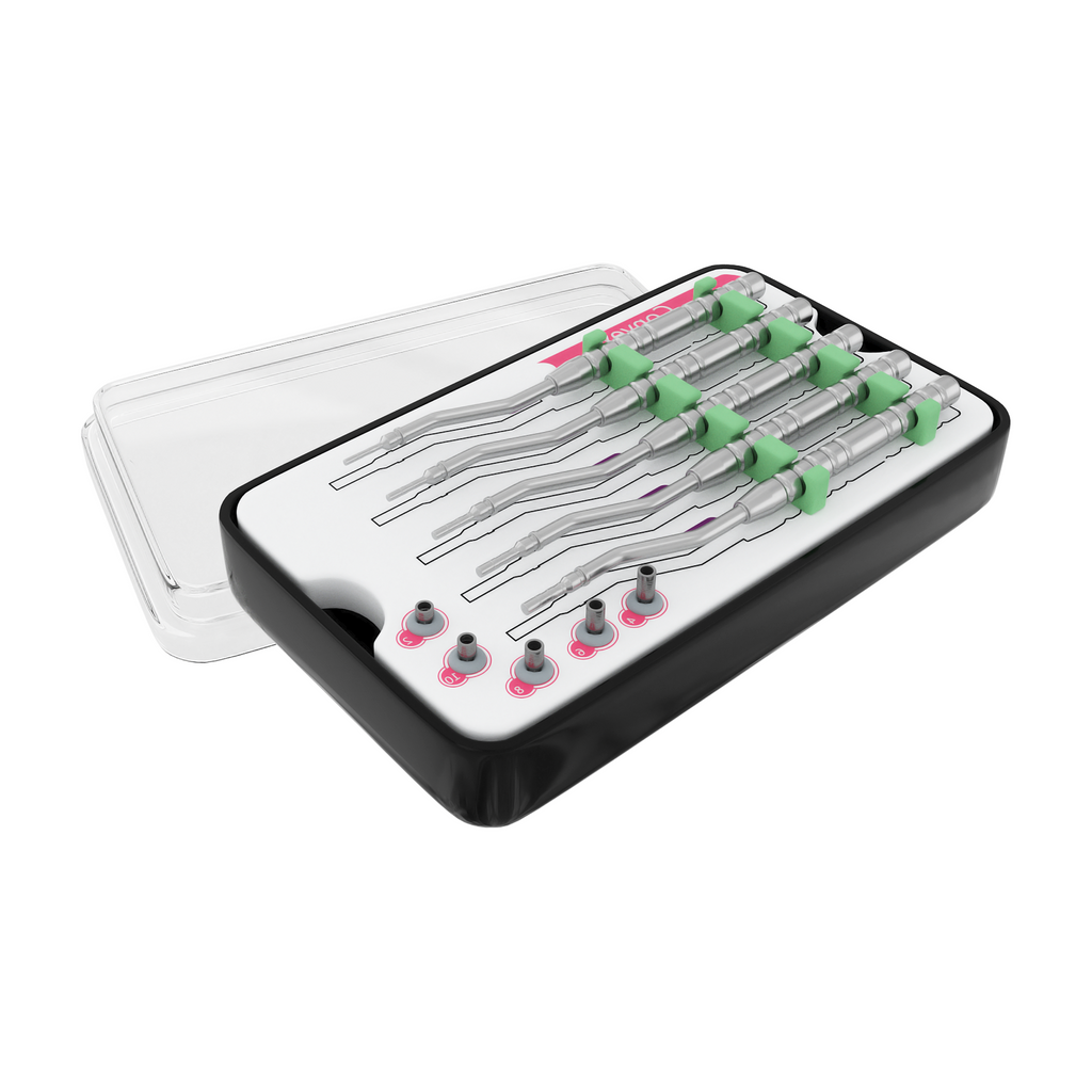 DSI Osteotome R-Kit serves to extend the apical floor of the osteotomy, and in contrast to rotary instruments, osteotomes have the added advantage of not generating heat during use. They do not damage the sinus membrane which gradually decreases any harm and inconvenience for the patient and enhances the healing process.