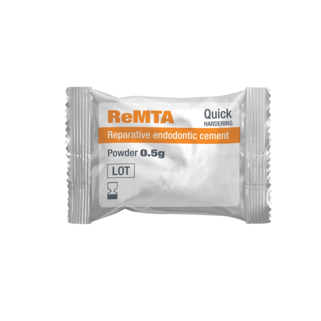 DSI ReMTA is a hydraulic bioceramic material specially formulated for root canal filling, repair, and vital pulp therapy. The packaging has been optimized to minimize waste, featuring convenient 0.5-gram pouches and corresponding mixing liquid for single-patient use. DSI ReMTA's fine hydrophilic particles set in the presence of water, effectively sealing pathways between the root canal system and surrounding tissues. This significantly reduces bacterial migration and ensures a natural setting even in moist conditions, making it superior to other alternatives on the market.