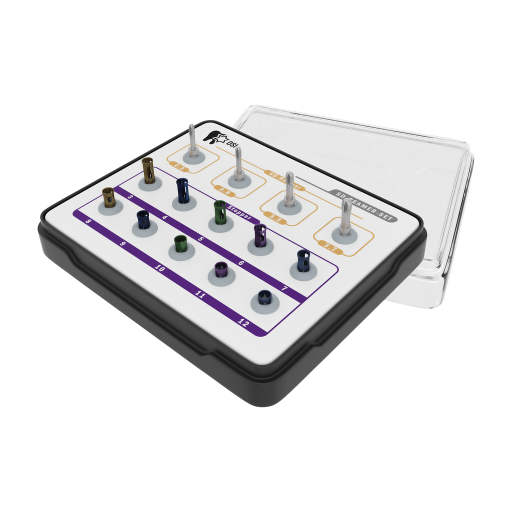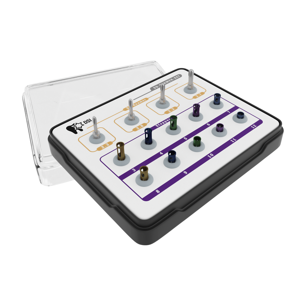 The DSI SD-Reamer Drill Kit For Crestal Sinus Lifting Approach with Stoppers is designed to facilitate a crestal sinus lifting approach, which is more beneficial for patients than many other alternatives. By using this kind of approach, there are fewer chances of post-operative complications and the healing process can be completed quicker. The crestal sinus lifting method is thought to be much safer for the patient and can bring peace of mind due to its minimal risks for any adverse effects. The DSI SD-Reamer Kit provides a dependable experience for your patient. Crafted with care, the reamers have a non-sharp-edged top that safeguards against any harm to the sinus membrane. Additionally, stoppers are tailored to fit perfectly with the reamer set, providing enhanced control and exactitude while operating. As a result, you can guarantee precise and predictable results with every use.