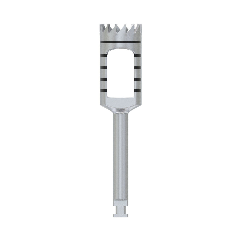 DSI Trephine Drills have a latch-type (RA) connection that can be connected with any contra-angle handpiece and is made of high-quality stainless steel, autoclavable, and reusable.