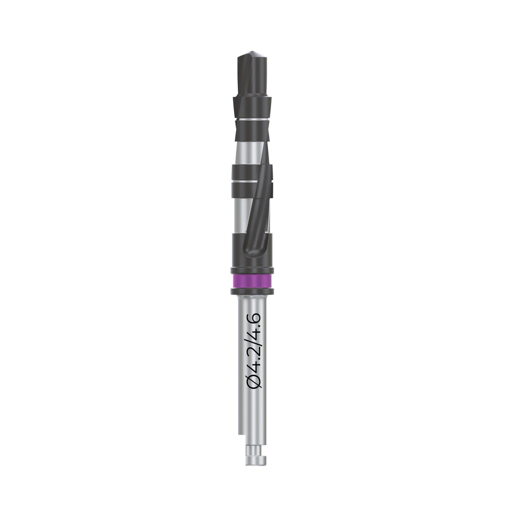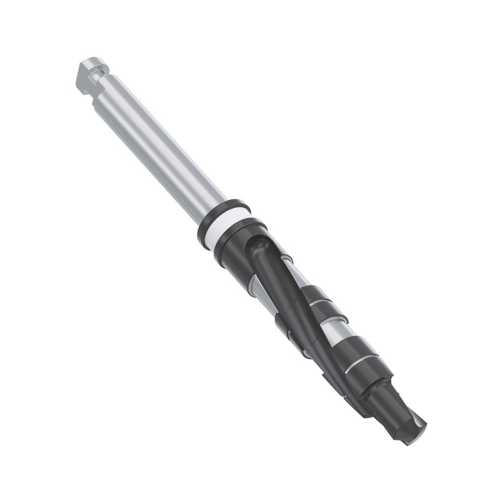 DSI Stepped drills have been specially constructed with each following drill being guided by the previous one for quick and precise drilling. The dimensions of these drills and their shapes have been designed to ensure compatibility with implant geometries. In addition, they provide outstanding accuracy, excellent balance, and an optimized cutting edge along with the Diamond-like Carbon DLC coating for a superior finish, and unbeatable performance.