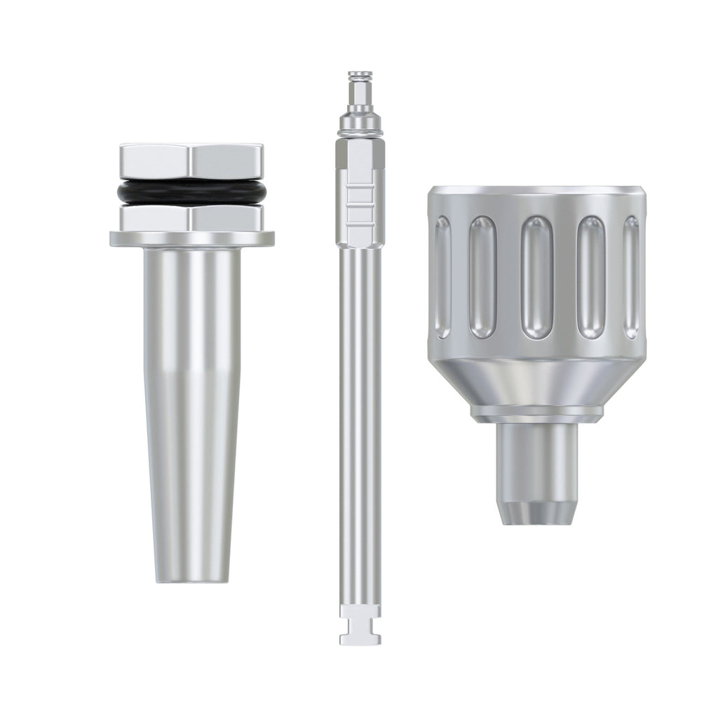 DSI universal driver main bit has a latch-type RA connection that can be used with any contra-angle handpiece. The set also includes 2 adapters, one for manual work and one for a hexagonal Ø6.35mm ratchet wrench connection. It means you can use it with a surgical motor, with a ratchet, or manually by hand without the need to acquire additional components.