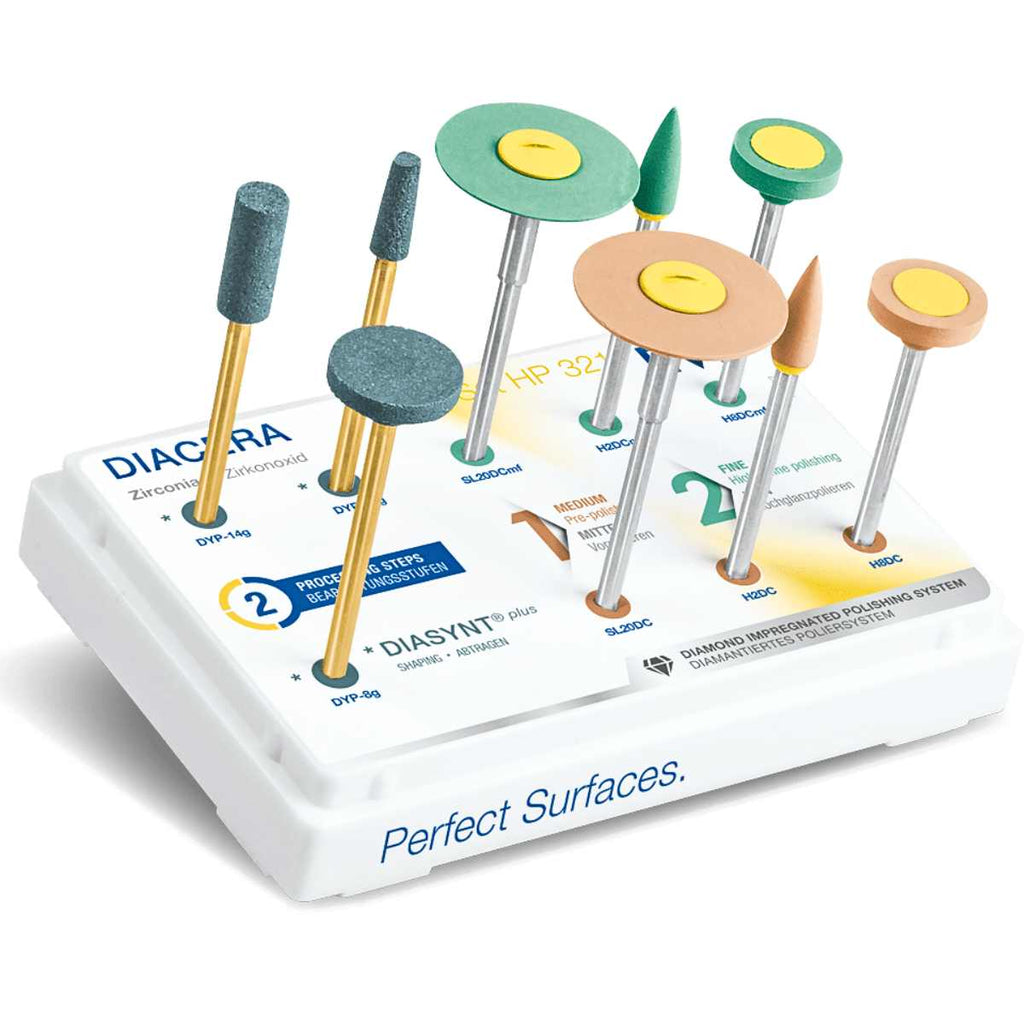 A complete set of 9 silicone polishers and 3 stones made for polishing zirconia restorations. This economical set has a quality and delivers outstanding polishing results. Each silicone in this set provides a flawless finish for zirconia restorations. The shape and convenient size for accessing hard-to-reach areas in the oral cavity.