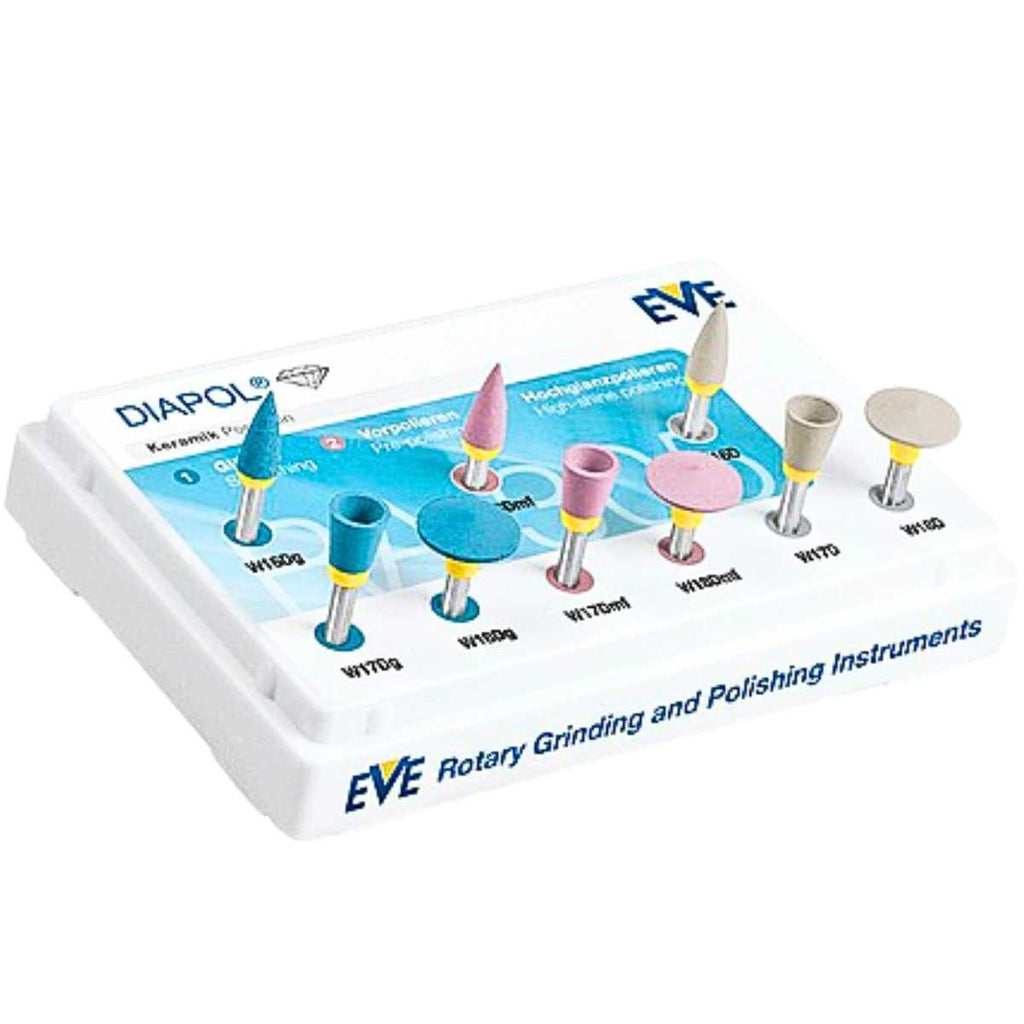 A set of 9 angled diamond silicone for polishing all types of porcelain restorations. This set has an economical solution for achieving polishing results. Each rsilicone polishers in this set is to provide a flawless finish for porcelain restorations. The unique angled shape and comfortable size allow for easy access to even the hardest-to-reach areas in the oral cavity.