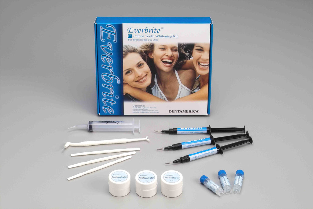 CONTENT: 3 Patient Tooth Whitening Economy Kit: Liquid 2 ml 3 pcs, Powder 0.8 g 3 pcs, Mixing Sticks, Shade Guide, Delivery Syringe and Tips, Sofdam 2g 3pcs.