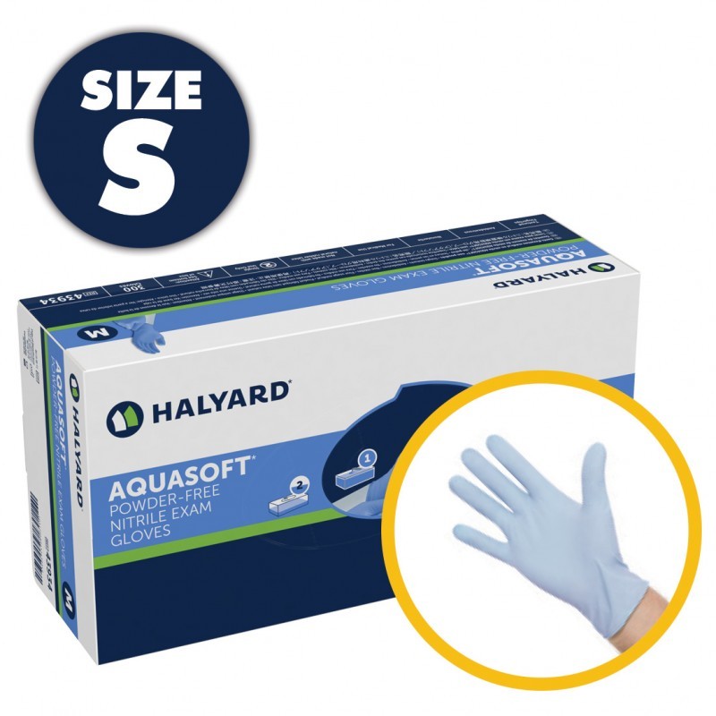 Gloves SMALL- Blue - Aquasoft Nitrile Exam Powder-Free - 300 Box