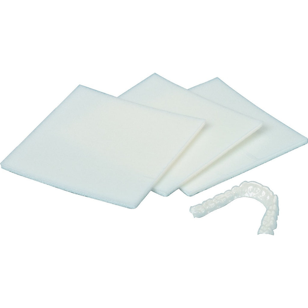 The Bleaching Laminate is ideally suited for making the bleaching tray and withstanding bleaching products. It is thin, only .020 (.5mm) inches thick once it's formed over the model. It has a foam liner to absorb the bleach, thus decreasing the bleaching time for the patient.