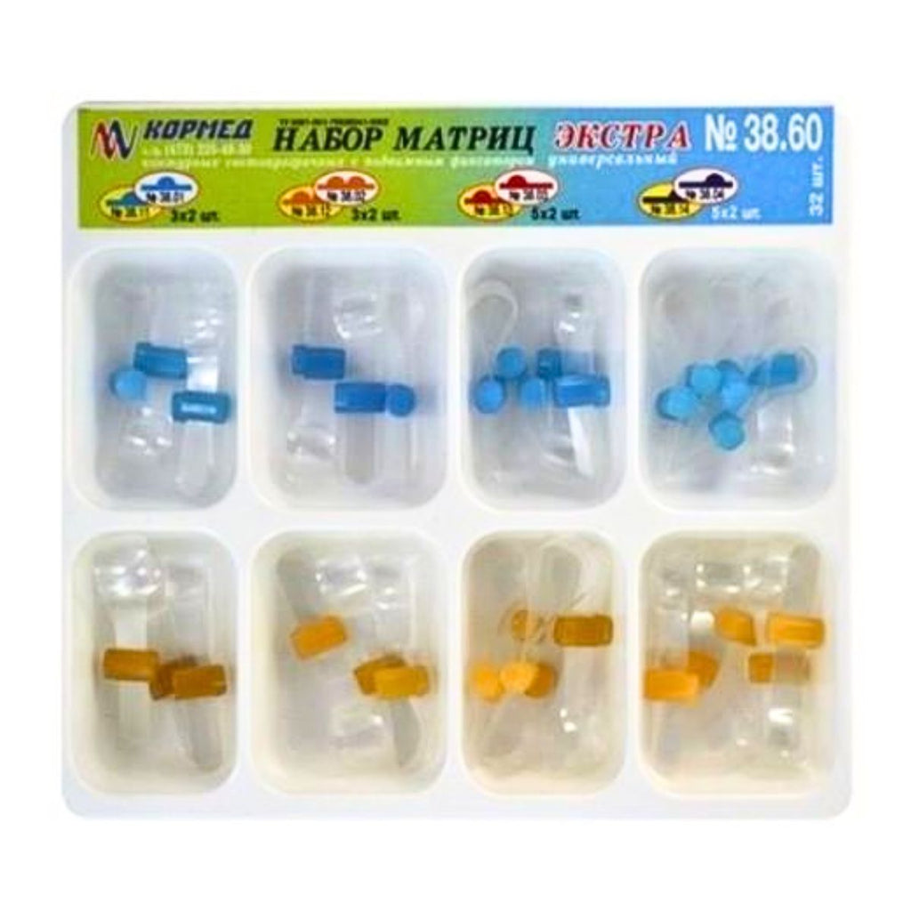 These matrices are made to restore the distal and medial contact simultaneously. Made with a translucent base and anatomically contoured thinnest annular matrices, Kormed Contoured Matrices Movable Fixation Molars Premolars offer precision and accuracy. The translucent matrices are a mere 0.06 mm thick. This ultra-thin design allows for placement and optimal contact formation. Kormed Contoured Matrices Movable Fixation Molars Premolars feature a unique tensioning system. A movable plastic retainer is tightly installed on the EXTRA matrix, creating a universal tensioning system. This allows for ideal tension and tight adhesion to the walls of the tooth.