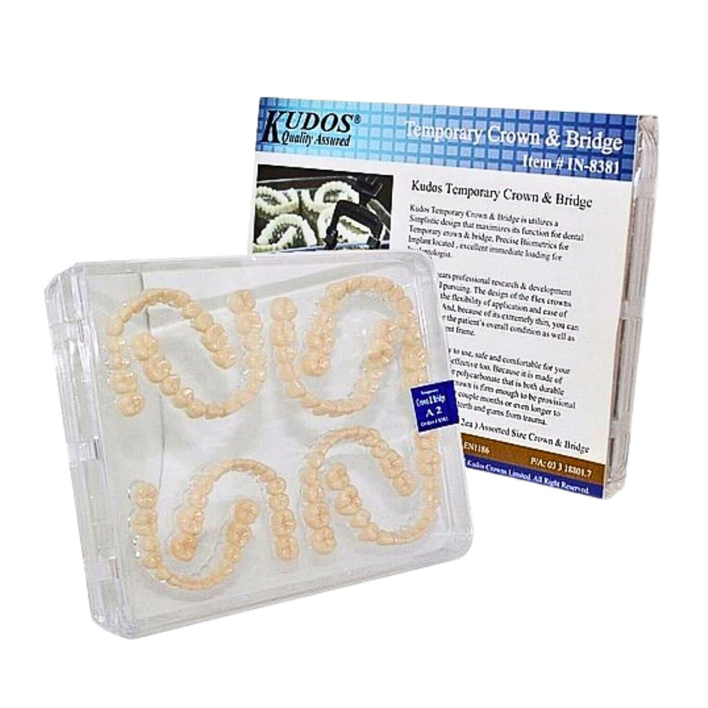 Kudos Crown & Bridge is efficient and functional, but also safe and comfortable. Made of unique polycarbonate material, it is both durable and flexible, ensuring a reliable and long-lasting solution. Its firmness allows it to serve as a provisional crown for several months, providing protection to the patient's teeth and gums.