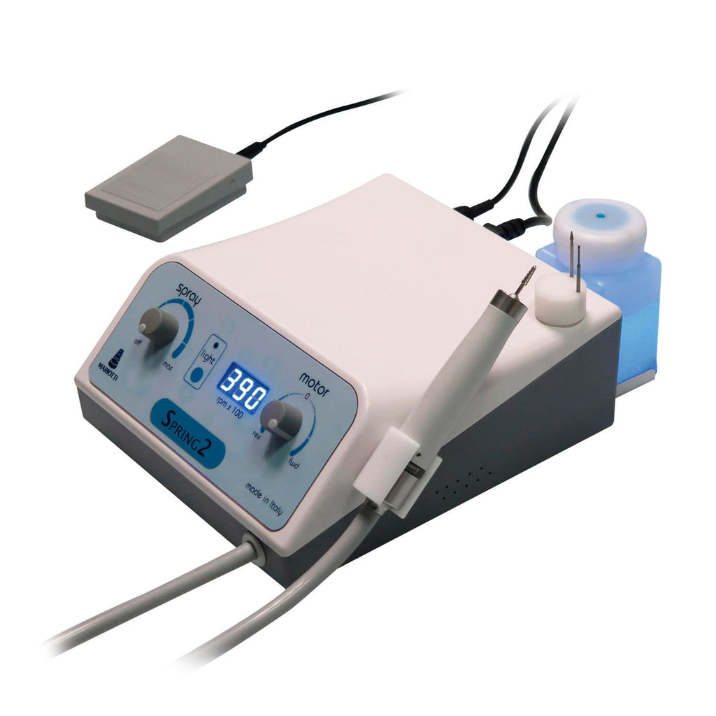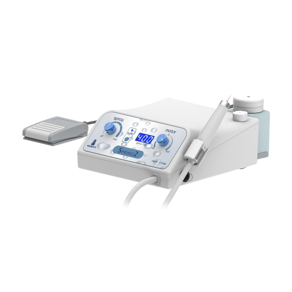 Mariotti Spring 2 Handpiece Micromotor With Spray&Led Light is a brushless micromotor of the newest generation, with high torque and speed performance. Integrated Spray system with optimally nebulized jet and accurate adjustment. Adjusted with high luminosity led light for the best results. Control unit with water tank, easy and practical control-panel with knobs for spray and speed adjustment. Accurate adjustable flow rate jet. High luminosity LED light. Control unit with water tank, easy and practical control-panel with knobs for spray and speed adjustment.