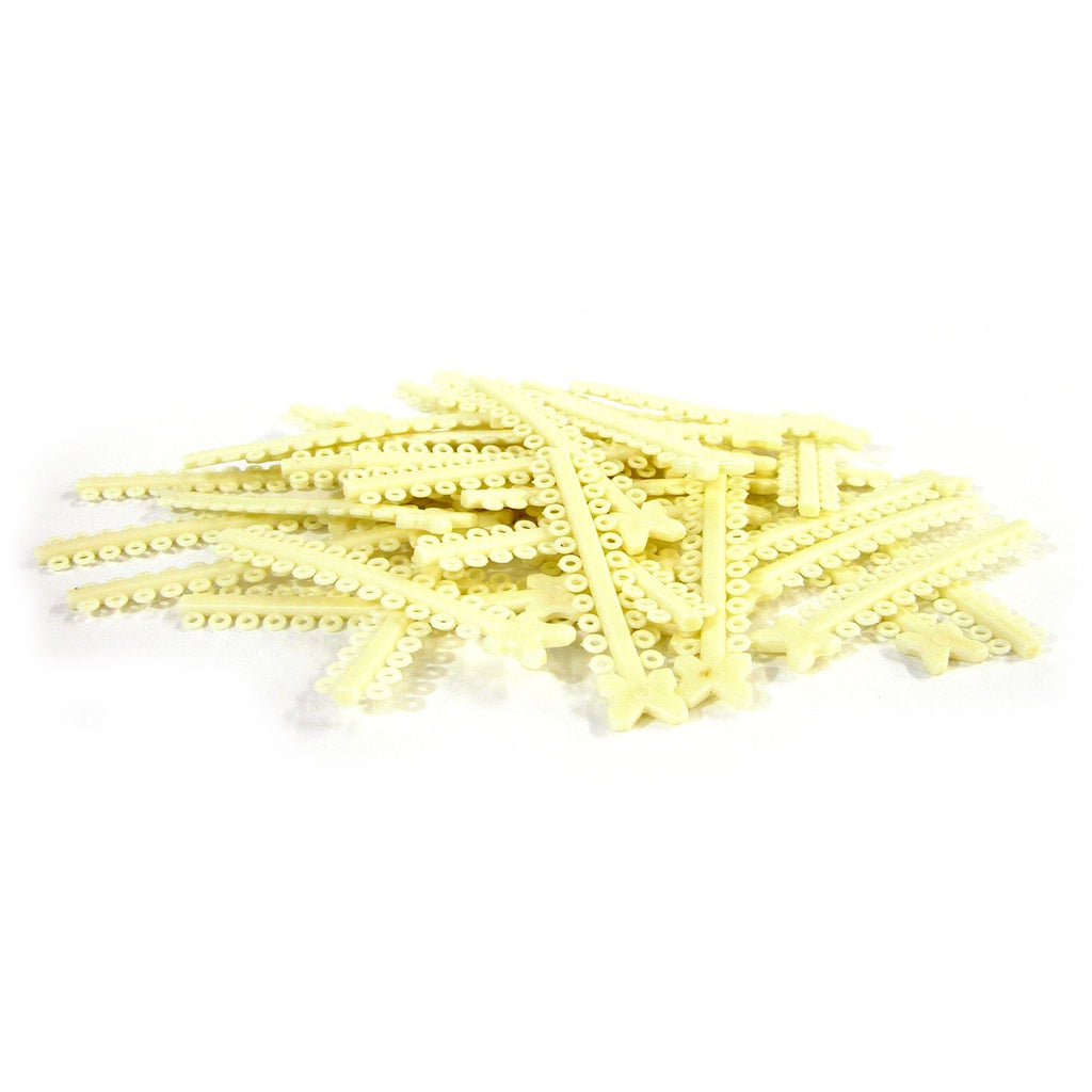 Morelli Elastic Ligatures outperform other options as the quickest and easiest way to secure archwires to brackets. Their effortless placement with pliers distinguishes them. They are made of high-quality materials and are built to last. These ligatures are the go-to choice for orthodontic professionals looking for a quick and dependable solution for archwire-to-bracket securing. They are exceptionally resistant to stains and fading, ensuring their aesthetic appeal remains intact for an extended period of time. Their tough materials and discoloration resistance make them ideal for long-term aesthetic orthodontic treatment.