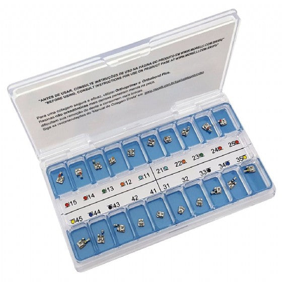 These brackets outperform the competition, making them the best choice for both practice and routine clinical treatment. Their symmetrical wings improve balance, increase strength, and provide patients with exceptional aesthetic results. This profile ensures quick, easy, and safe work, distinguishing them as the superior bracket option. Morelli Max Brackets ROTH 20 pieces is one patient (5x5) case and 200 pieces = 10 Patients (5x5) cases.