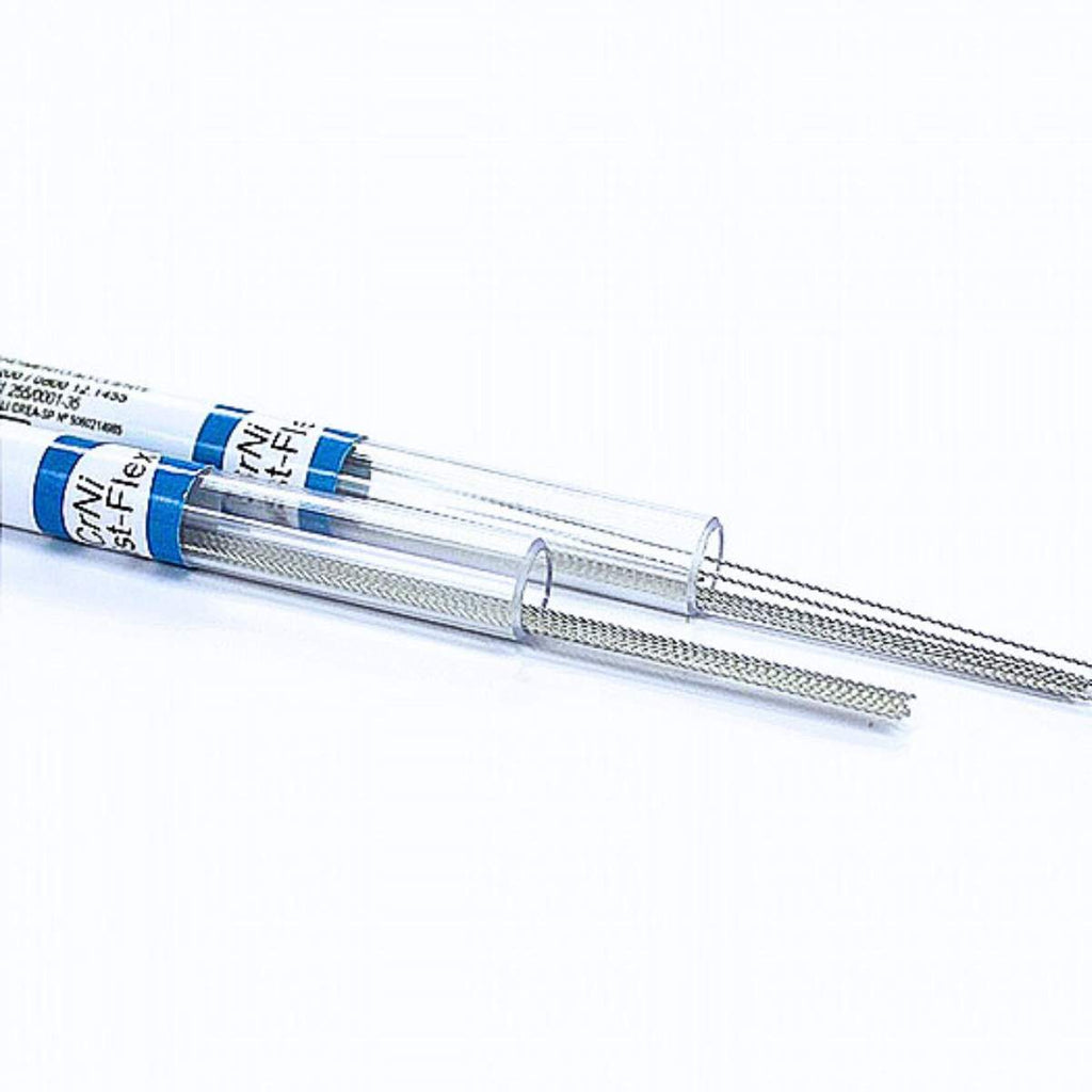 Orthodontic CrNi Strands Wire Twist Flex is a specialized tool used in the initial stages of orthodontic treatment. This tempered and twisted wire acts as a leveling wire, delivering effective treatment with gentle force. The unique design of three small-diameter round wire strands twisted tightly together ensures durability and dependability. One distinguishing feature is its resistance to unraveling or fraying when cut, providing orthodontic practitioners with a dependable and precise tool for a variety of orthodontic applications. Invest in the Orthodontic CrNi 3 Strands Wire Twist Flex for outstanding performance in delivering gentle yet effective force during the early stages of orthodontic treatment.