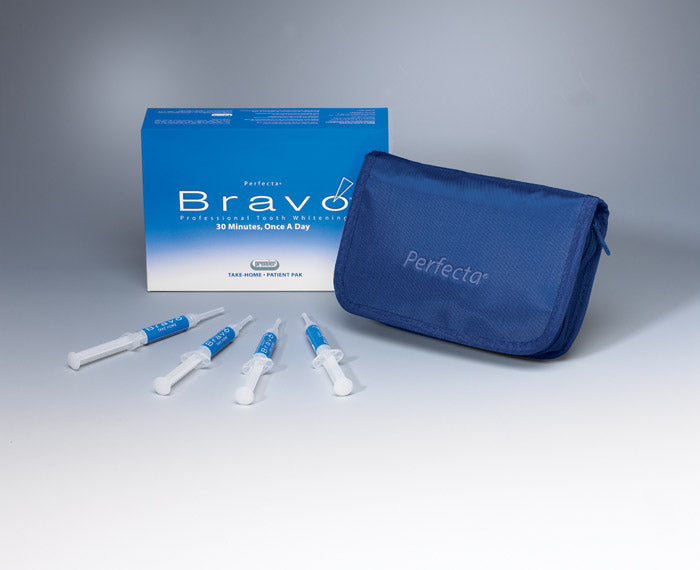 30 Minutes, Once A Day! Tooth Whitening CONTAINS: 4-3cc syringes with dispensing tips. - Patient instructions with shade guide. - Doctor instructions. - Cosmetic patient pouch, tray material and tray case. Hydrogen Peroxide. Sufficient material for complete 2-week patient treatment.