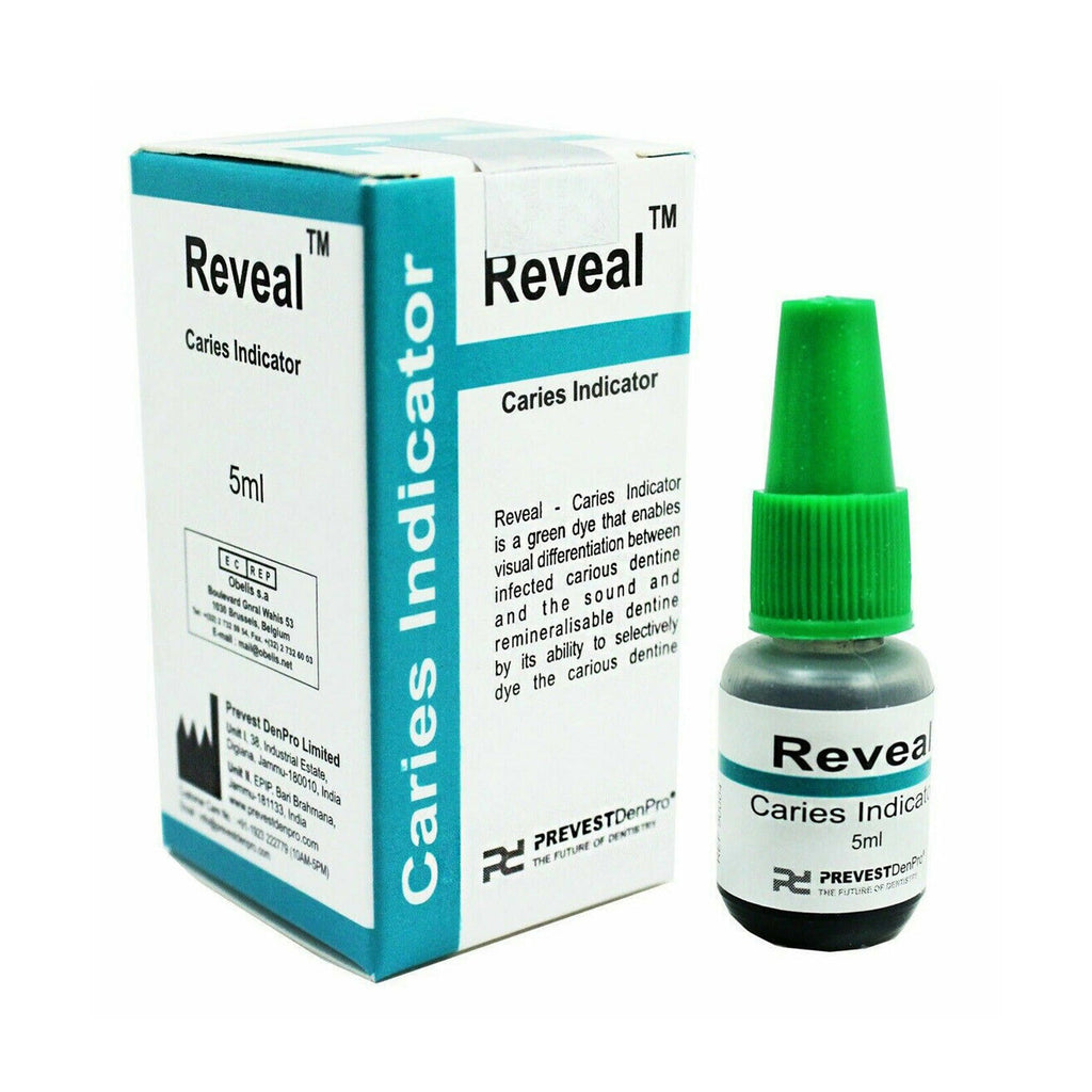 The unique formulation helps Reveal infiltrate the porous enamel, selectively binding to regions of demineralization or decay, resulting in a distinct green coloration. This color contrast allows for easy visual inspection under appropriate lighting conditions, enabling dental professionals to pinpoint areas of decay or demineralization accurately.