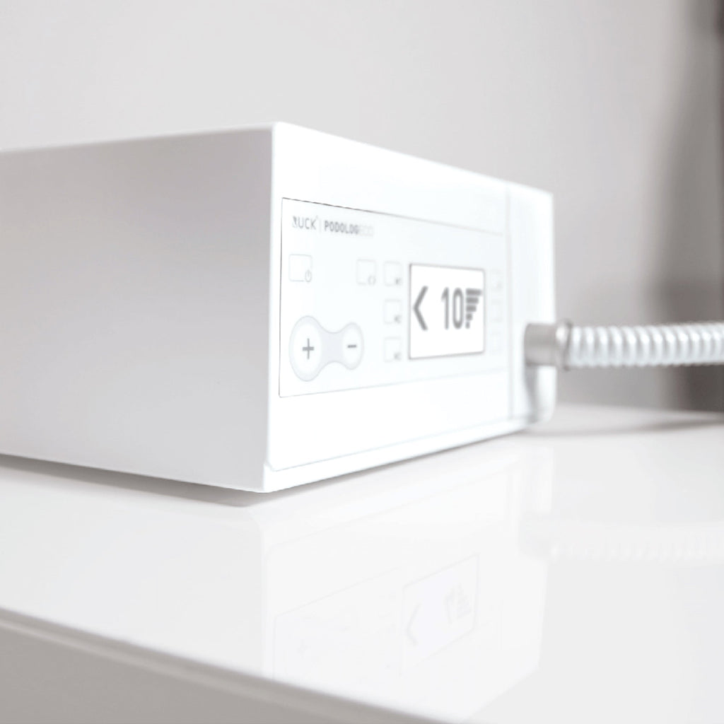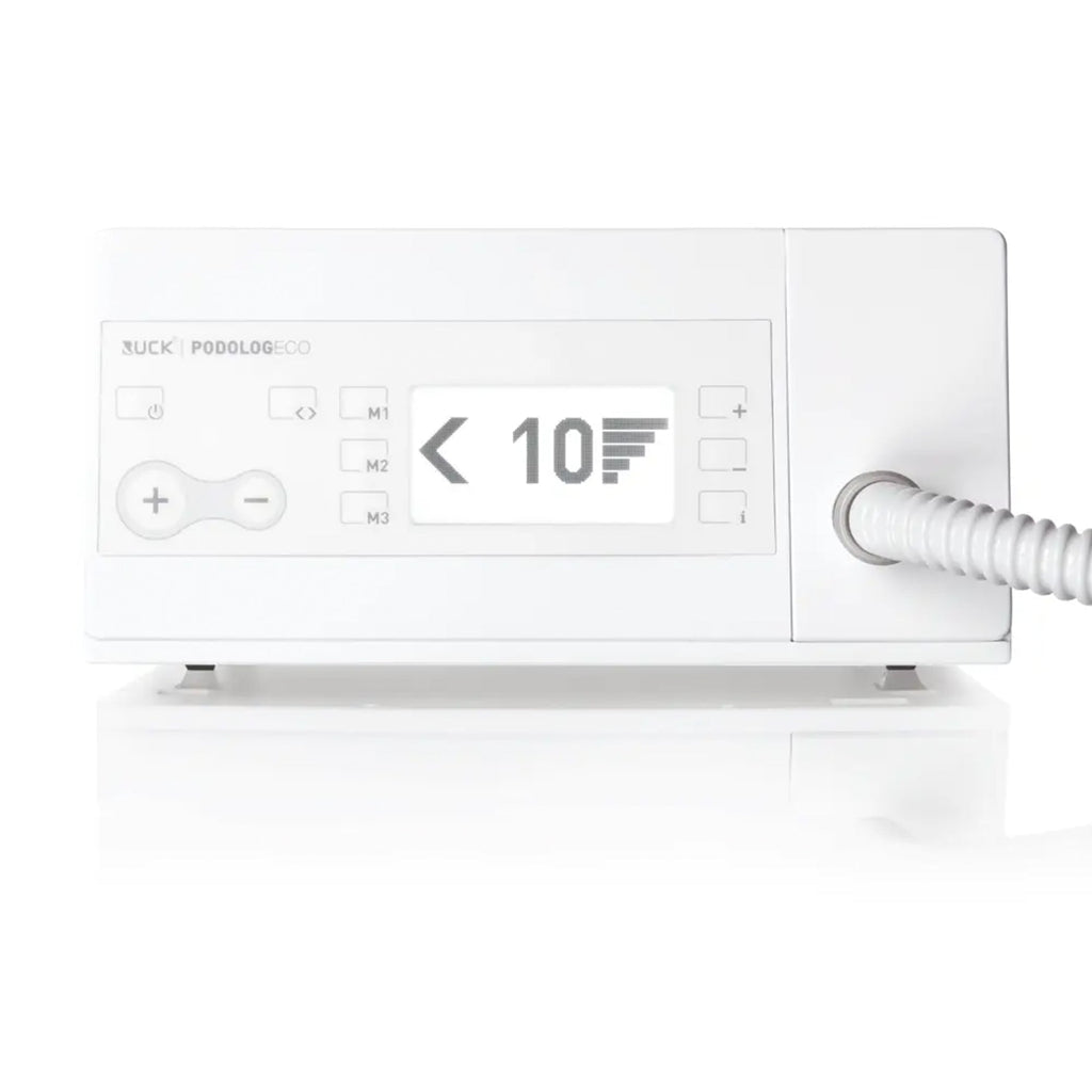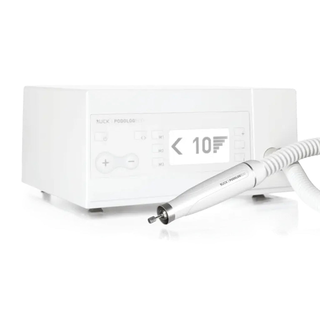 Ruck Podolog Eco Micromotor  With Vacuum Cleaner stands out for its remarkable combination of efficiency, ergonomics, and dependability. This device is practically silent, it is so much quiet that it does not impede conversation with a customer. Achieving such stillness was possible because of added noise insulation and aspects relative to the suction motor's blueprint. The maximum sound when operating at full power is just 61 dB, while the suction strength reaches 190 liters per minute.
