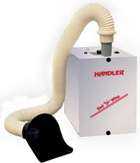 Designed to provide excellent suction to a single bench top work position, the Super Sucker II develops 110 CFM (cubic feet/minute) at a static pressure of 63” of H20 and is one of the most powerful single station dust collectors available. Designed for continuous duty, the disposable HEPA filter bag is easily removed through the front access door with the removal of two thumb screws. A rear internal activated charcoal filter aids in the removal of acrylic monomer odors. The 62-II Super Sucker is shipped complete with the dust collector with variable speed controlled suction motor, 6 feet of 2-1/2” flex hose and a fish mouth suction inlet. Replacement filters are 62-IIDF (Set of 3 disposable HEPA filter) and 62-IICF (one charcoal filter)