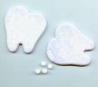 Our great tasting breath mints come in a tooth shaped holder. Also available for personalization. Warning: Chocking Hazard. Small parts. Not for children under 3 yrs.