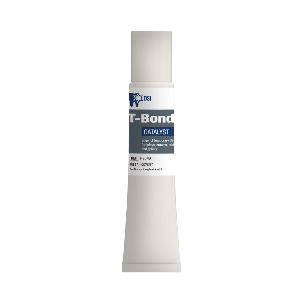 Both DSI T-Bond and T-BOND NE are temporary cement types designed for temporary crowns and bridges. The non-eugenol variant is better for patients allergic to eugenol, guaranteeing compatibility without affecting the setting of permanent resin cement or the integrity of temporary acrylic restorations. T-Bond boasts excellent flow properties for effortless application and precise seating. Packaged in a convenient tube delivery system containing an 85g base and 25g catalyst, totaling 110g, it offers unparalleled value for cost-effectiveness in the market.
