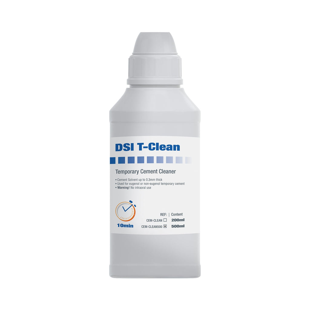 DSI T-Clean is a cement solvent designed for fast, effective, and damage-free removal of, eugenol-based or non-eugenol-based temporary cements. DSI T-Clean offers unparalleled performance, ensuring a clean, residue-free surface for seamless subsequent procedures. Its advanced formulation guarantees efficiency and reliability, making it an essential tool for dental professionals.