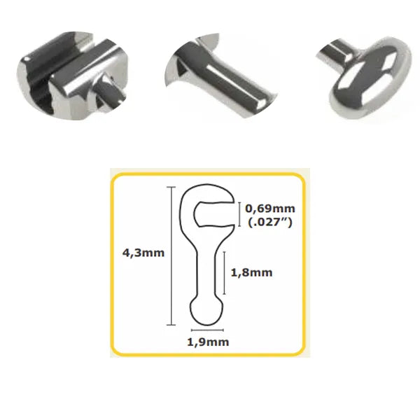 The Morelli Universal Straight Hook Crimpable Ball Tip is a time-proven and reliable solution, attached to the ortho arches, and crimped by a plier to be kept in place. It is an elastic hook near the wire and can also be used as a pressed hook on the archwire with a compressed coil. Used in orthodontic arch for anchorage of elastic chains, springs, and metal wires, in treatments involving retraction, mesialization and anchorage.