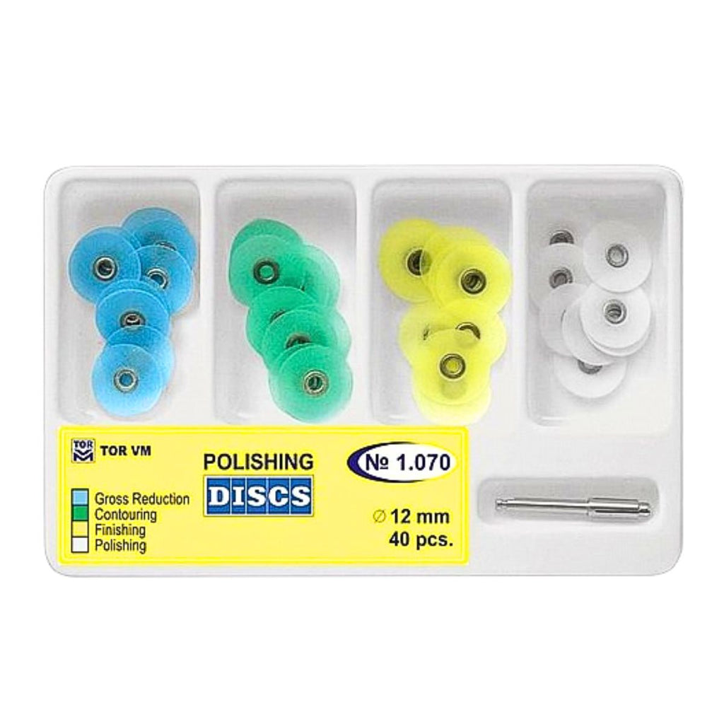 The assortment includes four different discs - Coarse, Medium, Fine, and Superfine. The Coarse disc is for removing excess material, while the Medium disc is for preliminary sanding. The Fine disc provides the final touches, and the Superfine disc gives a composite restorations a glossy shine. The kit has 40 units.