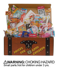 This mega mix includes 600 cool toys in a chest. A wide variety of prizes, favors, and giveaways that everyone's sure to love.Warning: Chocking Hazard. Small parts. Not for children under 3 yrs.