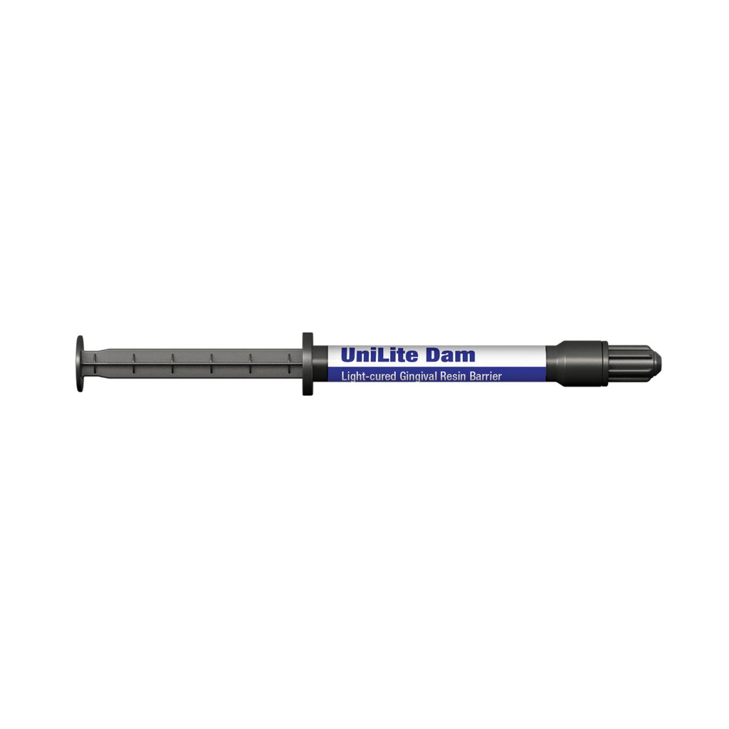 DSI UniLite Dam comes in a convenient syringe format, ensuring efficient and precise application. Its viscous semi-gel consistency allows for adequate flowability, making it simple to spread evenly over the desired areas. Moreover, its dark blue color provides excellent visibility against the gingiva, soft tissues, and teeth, ensuring accurate placement and coverage.